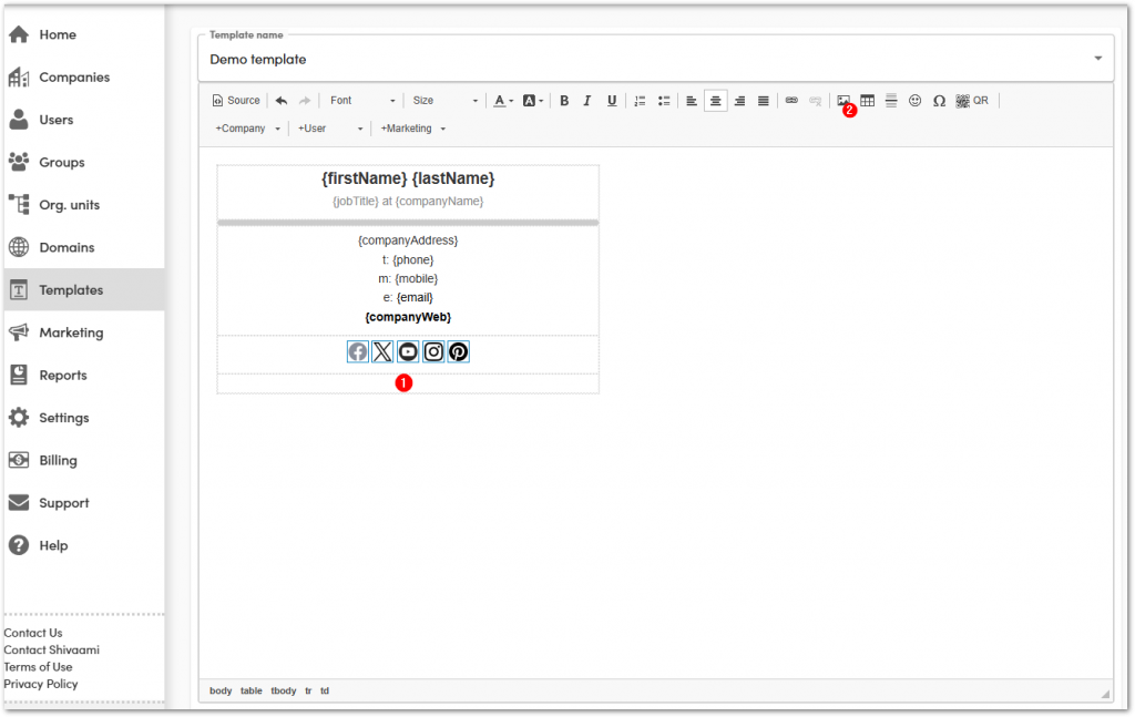 For each campaign created a special marketing attribute is generated automatically. To add marketing content to your signature, simply insert the {marketing} placeholder to your signature template following the steps below.