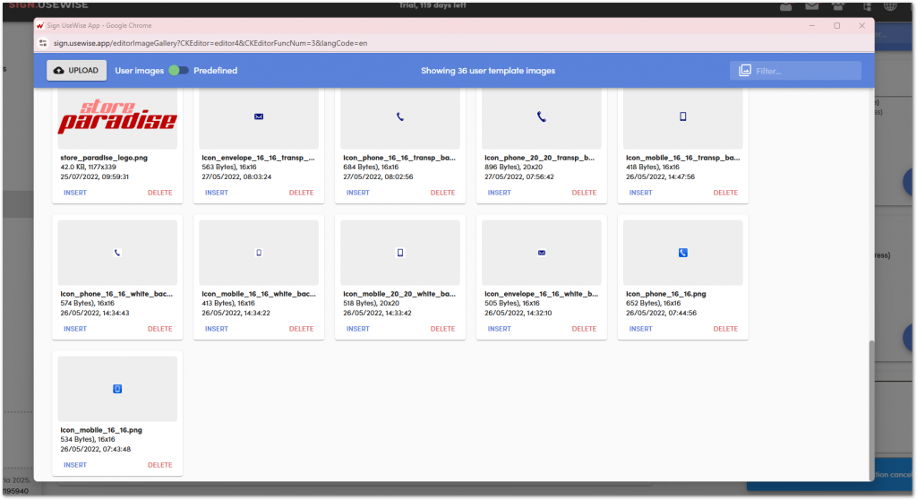 When logging into Sign.UseWise® or trying to upload an image to a gallery, a blank window may open. Press CTRL+F5 to load the app.